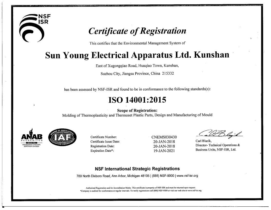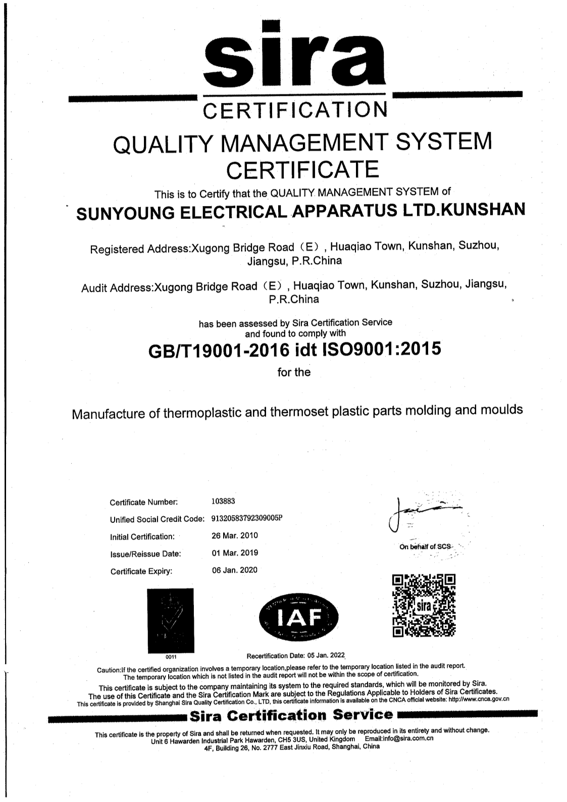 昆山華之辰電器有限公司于2006年9月設立成立,專業從事電木(UP,PF,DAP,MF,MU)、 密胺樹脂、高分子復合材料( BMC 、 SMC、 DMC )等熱固性塑料和熱塑性塑料 (PBT.ABS.PC.NYLON.PP) 射出成型加工。主要為SIEMENS、廈門 ABB 、施耐德、ELECTROLUX,、伊頓等世界知名客戶配套加工生產產品。 公司為開拓市場制定更優的發展戰略,目前已經擁有了進口電木、 BMC 射出成型機幾十臺( 100T-500T )及先進的模具加工設備、檢測設備,為生產出合格的產品提供了充足的設備保證。通過公司不斷的進取,于2007年 3 月通過 了ISO9001 :2000 質量體系認證,并于廠內全面推行全員質量管理和“ 6S ”運動。2011年通過ISO14001體系審核,并與2018年通過ISO14001體系跟蹤審核。制定有系統的環境管理程序。同時于2015年通過三級安全標準化審核,并于2018年通過復審。 公司從模具設計制作、制品成型加工與組立一體化之完善運營流程,更保證產品的品質與合理作業成本,使之在市場上更具竟爭力。我們一貫堅持“以質為本···
